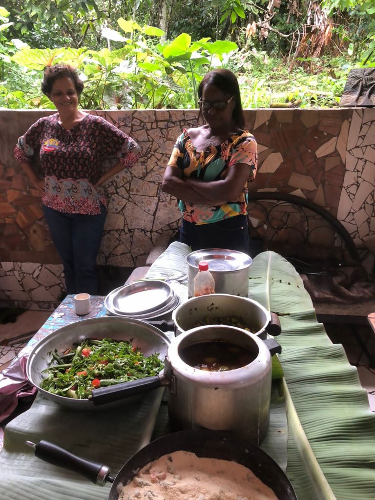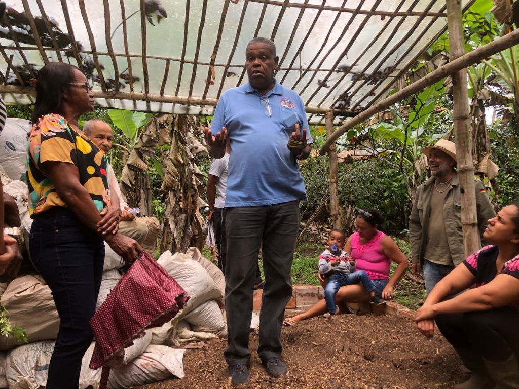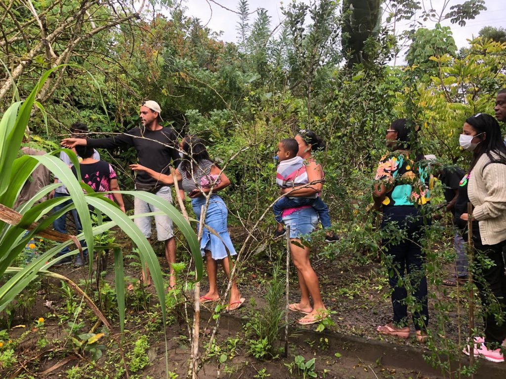 A few weeks later, I was staying near the coast of Bahia with Mestre Cobra Mansa, capoeira master and permaculturist, and happened to meet another group of sem terra from a nearby camp, who came to meet my host, and learn a bit about permaculture and agroforestry. About 20 people from the community, men, women, young and old, were given a tour of Cobra Mansa’s land, from the medicinal herb laboratory, to the irrigation systems, to the agroforests. Of immediate interest to them were the compost toilets, as there was no plumbing system at their camp. Also present was a representative of the Partido dos Trabalhadores of Bahia, who gave a speech about the importance of the upcoming elections, including the presidential election between Lula and Bolsonaro, highlighting the mutually beneficial relationship between PT and MST, and the danger posed by Bolsonaro to the movement. It was a nice morning, ending in a communal lunch, and again highlighted how individual settlements and camps within the movement were taking the initiative to incorporate the environmental struggle into the movement.