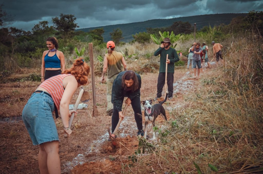 About 400km inland from the coastal capital of Bahia, Salvador, is the Chapada Diamantina, a national park more than three times the size of Switzerland. Most of the interior of Bahia is a biome known as Cerrado, a diverse set of, mainly semi-arid, ecosystems including forests, savannahs and grasslands. The Chapada, a large plateau crossed with huge canyons, is a particularly fertile part of the region, and gets a lot of rain in comparison to neighbouring zones. It was in a small settlement in the Chapada, that I met a French activist who told me members of a nearby Movimento Sem Terra (MST) settlement wanted to begin practising agroforestry and were organising a mutirão (collective work) to plant a syntropic forest, so a few days later we (along with about 10 other people) were on the move.